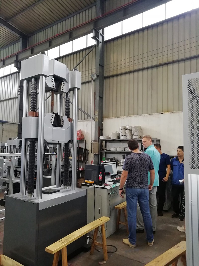 济南91香蕉视频在线试验机制造公司专注试验机研发生产十余年时间,技术先进,品质保障,售后无忧,获得数万客户信赖品牌。图为俄罗斯客户到厂验收成人香蕉视频,机器稳定的性能获得客户双手称赞,感谢客户信任与支持!